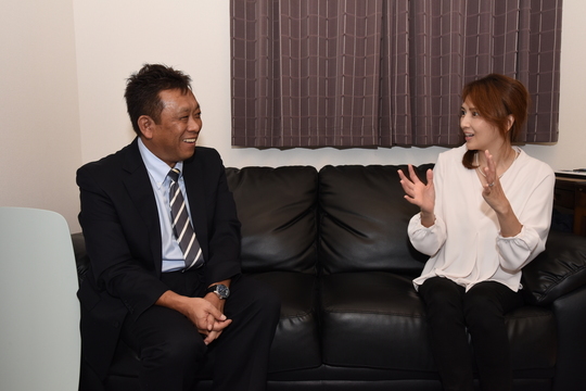 インタビュアーに女優の吉井怜さんにお越し頂き、インタビューを受けました。素敵な方です。