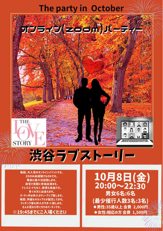 ☆当日は1回につき参加者&仲人の総勢25名程での開催となりますので、1名でも入場トラブルや通信トラブルが発生しますと全体に支障をきたします。事前準備を抜かりなく宜しくお願い致します。