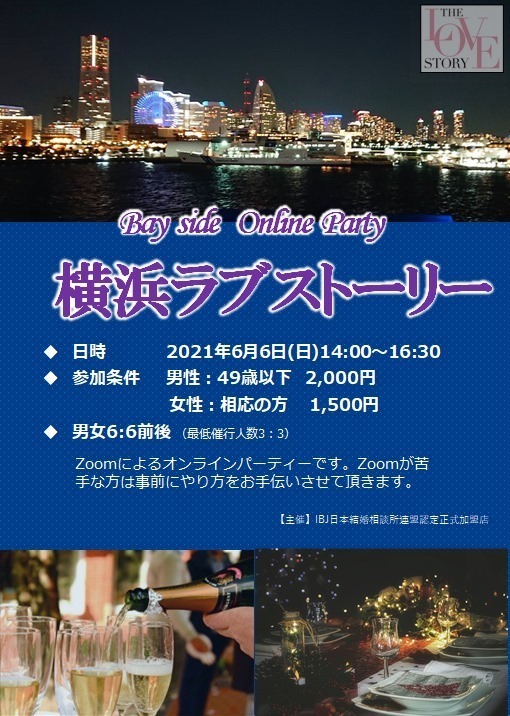 ☆当日は1回につき参加者&仲人の総勢25名程での開催となりますので、1名でも入場トラブルや通信トラブルが発生しますと全体に支障をきたします。事前準備を抜かりなく宜しくお願い致します。